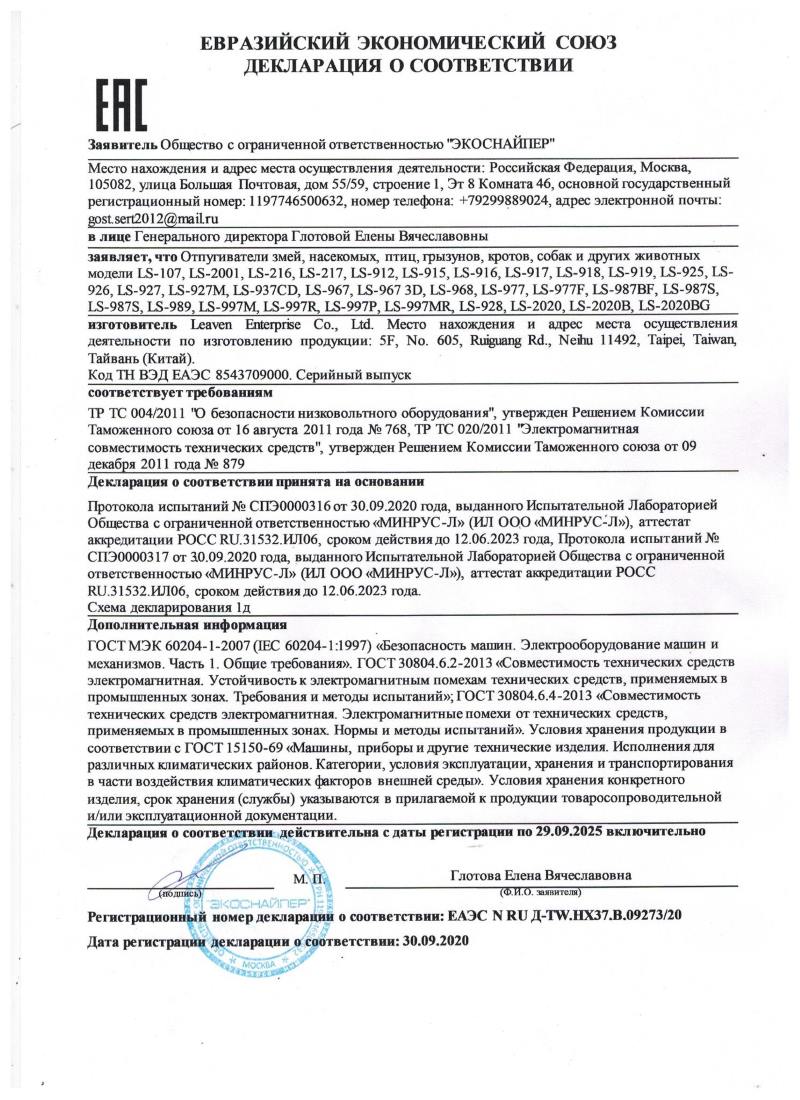 Отпугиватель змей «Экоснайпер LS107» отзывы